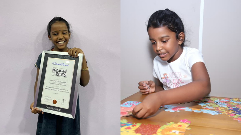 Seven-year-old Abhineya, diagnosed with Level 2 autism spectrum disorder at the age of five, has etched her name into The Malaysia Book of Records after completing an astonishing 643-piece jigsaw puzzle in just one hour.