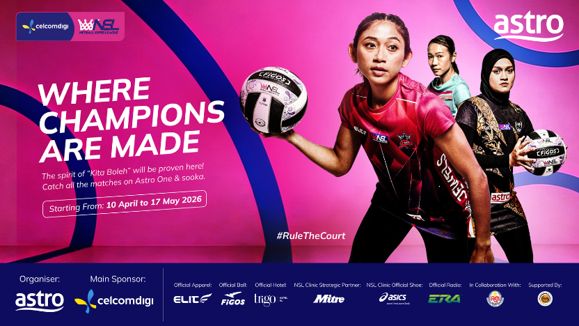 Catch the fifth season of the Netball Super League on Astro Arena (Channel 801), Astro GO and Sooka from 12 April to 17 May 2026. Astro invites customers to enjoy greater value with the Astro One Pack, now starting from RM49.99, offering seamless streaming and unlimited entertainment. Interested customers may visit astro.com.my or contact Astro via WhatsApp at 03 9543 3838.
