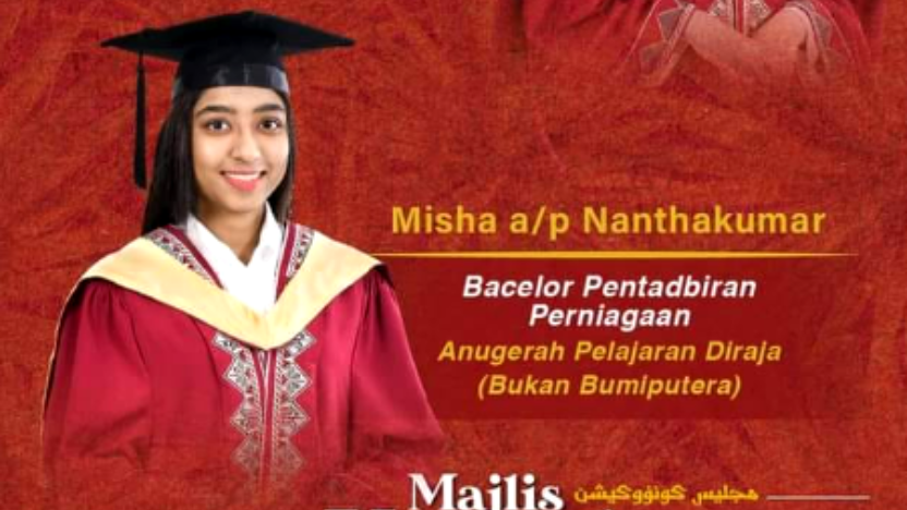 This quote suits well for the young prodigy who has completed her bachelor's and was bestowed with the prestigious Royal Education Award. Misha Nanthakumar, the Universiti Putra Malaysia’s (UPM) student has graduated with an exceptional haul under Bachelor of Business Administration.