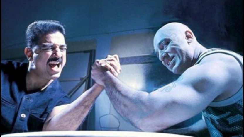 Kamal Haasan played a dual role in this action thriller directed by Suresh Krissna. The soundtrack of the movie was composed by the music trio Shankar–Ehsaan–Loy making their debut in Tamil, and the film score was composed by Mahesh Mahadevan.