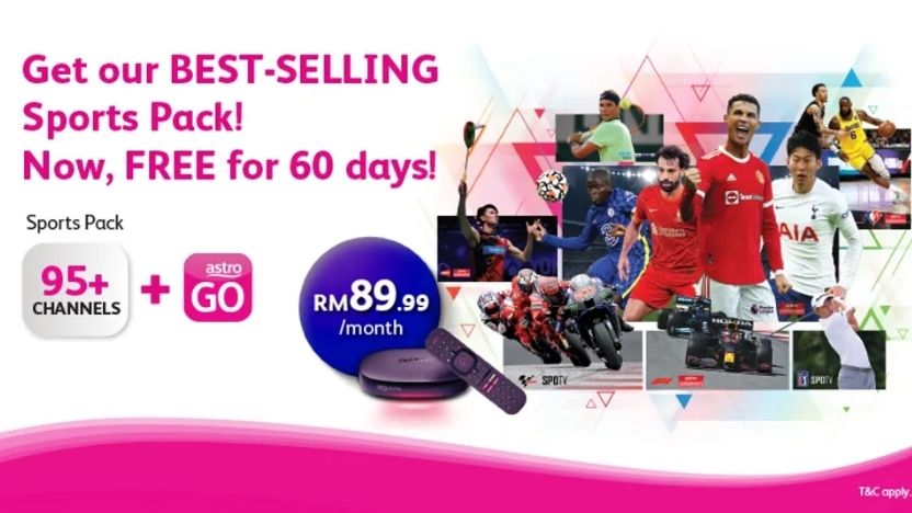 The Astro Sports Pack also comes with 85+ channels from Primary Pack for endless local and international entertainment for the whole family.
