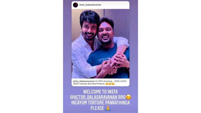 Comedian Bala Saravanan who acts in the film is also Sivakarthikeyan's friend. He shared their photo together on social media after opening an official account. Sharing the post, Sivakarthikeyan welcomed Bala to Instagram and posted a funny response.