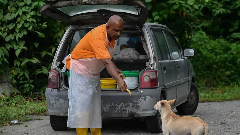 A 65-year-old lorry driver, Viriya Raman dedicates his evenings to feeding around 100 stray dogs in the Gombak region.