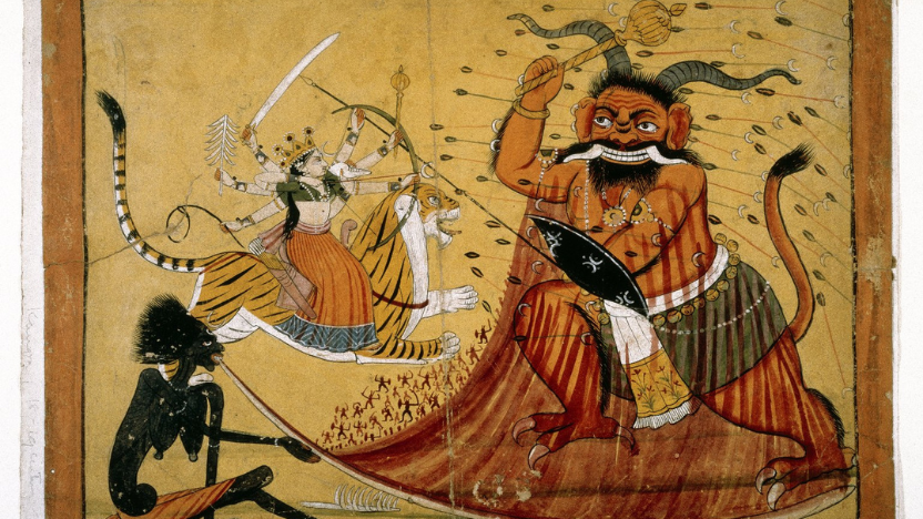 According to ancient legend, there once existed a powerful demon, or asura, named Raktabija, who posed a significant threat to both gods and mortals. The source of the gods' fear was his near-immortality: each time someone attempted to kill him, every drop of his blood that touched the ground would give rise to countless clones of himself. Many tried to defeat him, but all failed, except one.