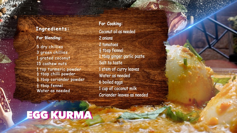 - Lastly, add coriander leaves and stir well. Egg Kurma is ready to be served!