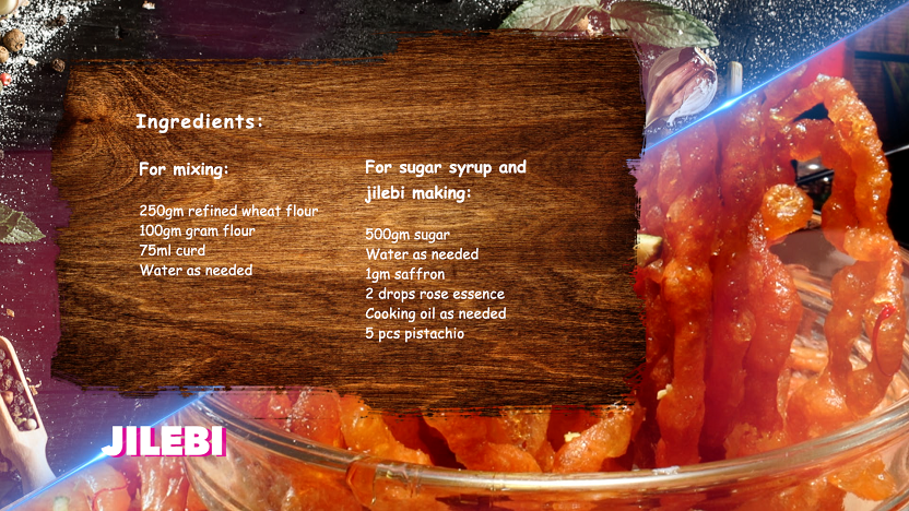 - Soak the Jilebi in sugar syrup for 1 to 2 minutes. Then remove the Jilebi from the syrup and sprinkle some pistachio.