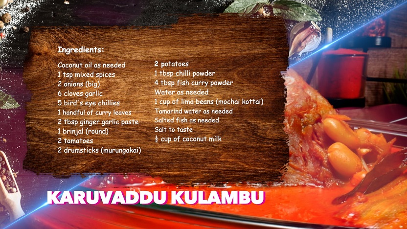 - Add salt to taste, and the delicious karuvaddu kulambu is ready to be served.