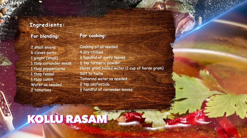 - Lastly, add ½ tsp asafoetida, ½ handful of coriander leaves, and simmer for few minutes to complete the healthy Kolly Rasam.