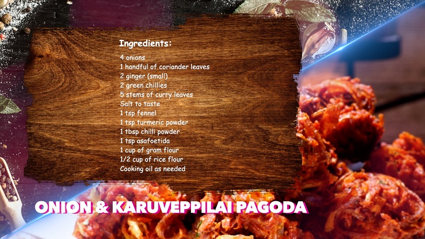 - Delicious onion and karuvepillai pagoda ready to be served.