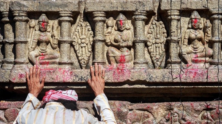 The shrine is located on a hill which has Cinnabar deposits, a red rock known as Kamiya Sindoor. Sindoor is well known for its red colour, and some believe this is the reason for the colour change.