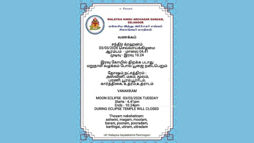 The first total lunar eclipse of 2026 is set to take place on March 3, and it will be visible from Malaysia. Known as Chandra Grahan, it is associated with the mythological phenomenon of Rahu and Ketu swallowing the moon. Although culturally considered inauspicious, especially in Vedic astrology, the effects of the eclipse can be mitigated with appropriate remedies and pariharams.