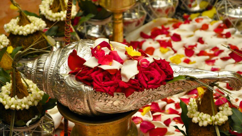 During the ritual, holy water known as tirtham is poured through a sacred conch shell before being used for the ceremonial bathing of Lord Ganesha. The natural spiral formation of the conch causes the water to flow in a swirling motion as priests chant sacred mantras. Devotees believe that this process amplifies the spiritual energy of the ritual. In Hindu tradition, the conch shell itself is regarded as the dwelling place of celestial beings, making the Sankha Puja especially auspicious. Those who participate in it are believed to receive blessings of health, prosperity and happiness.