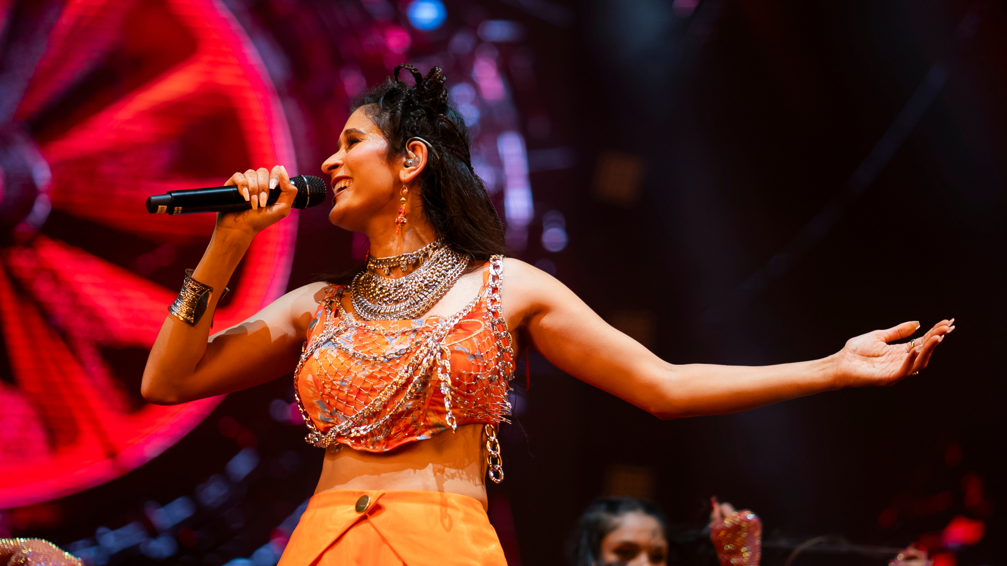 Her powerful vocals and dynamic stage presence had the entire stadium on their feet, dancing and singing along to every beat. From 'Mukkala Mukkabala' to 'Chandralekha' and 'Raavadi', with her infectious energy, she truly brought the house down with her sensational performance. Indeed, she had the entire stadium in the palm of her hand!_13.png)