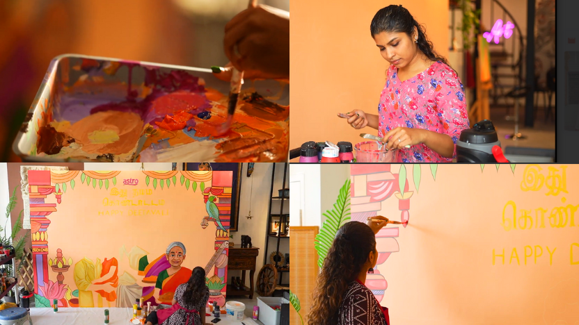 With that recently, Sangheeta’s talent reached new heights when she was approached by Astro to create the key visual mural for Deepavali 2025. The opportunity came through an unexpected message on Instagram. “At first, I didn’t expect much, this field has its ups and downs. But when I met the Astro team, I knew it was something special,” she said.