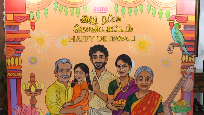 The concept for the mural was rooted in celebration and community. “They wanted something that truly reflected the spirit of Deepavali. I produced a sketch by hand, we didn’t use AI at all. Everything was hand-drawn using digital pens and sketching tools like Procreate. I’m grateful that the Astro team trusted my process.”