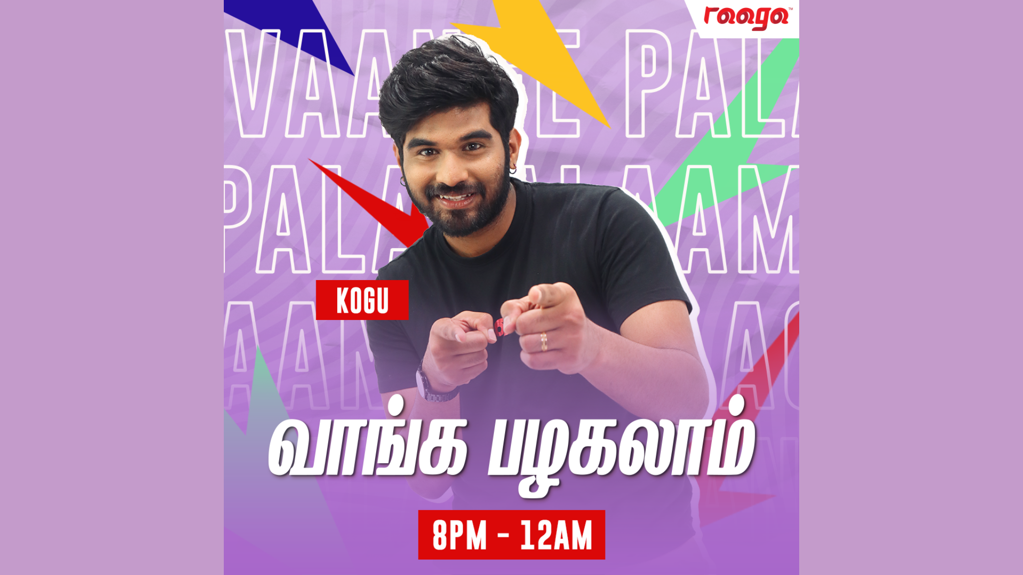 8pm until 12 midnight, Kogulan will still be the announcer of the Vaange Palagalam segment, which highlights entertaining games, fascinating topics, and amusing memes.
