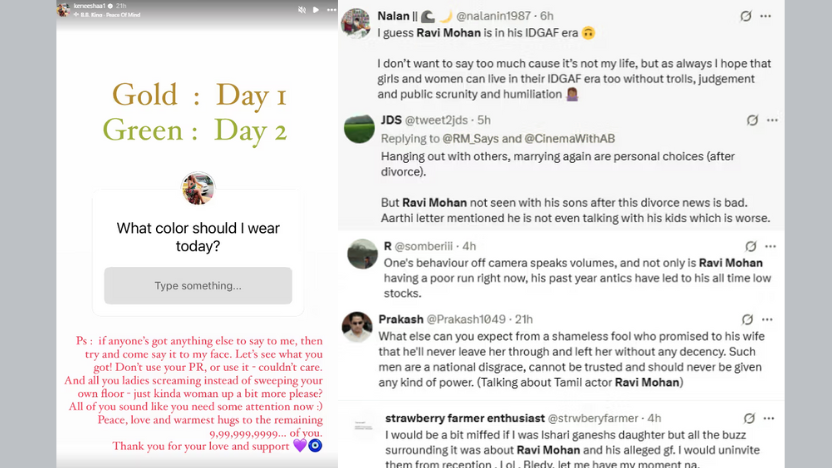 In an interview with DT Next, Keneeshaa opened up about the online hate she has received since rumours began circulating about her alleged involvement in Ravi and Aarti's marital issues. She explained that although the negativity affected her and concerned her loved ones, she remained confident in her truth.