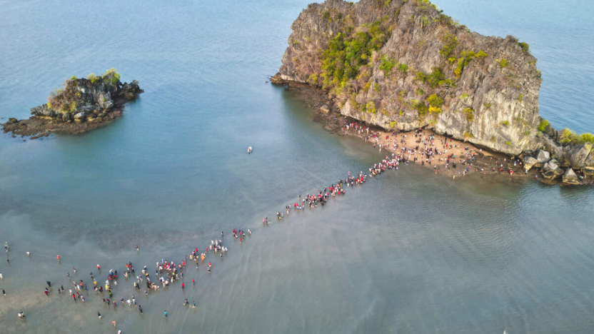 The experience begins early. As the tide drops, visitors gather as early as 5.30am, stepping onto the sandy path while the horizon slowly brightens. With every step, the ocean stretches out on both sides, creating a breathtaking and almost dreamlike view.