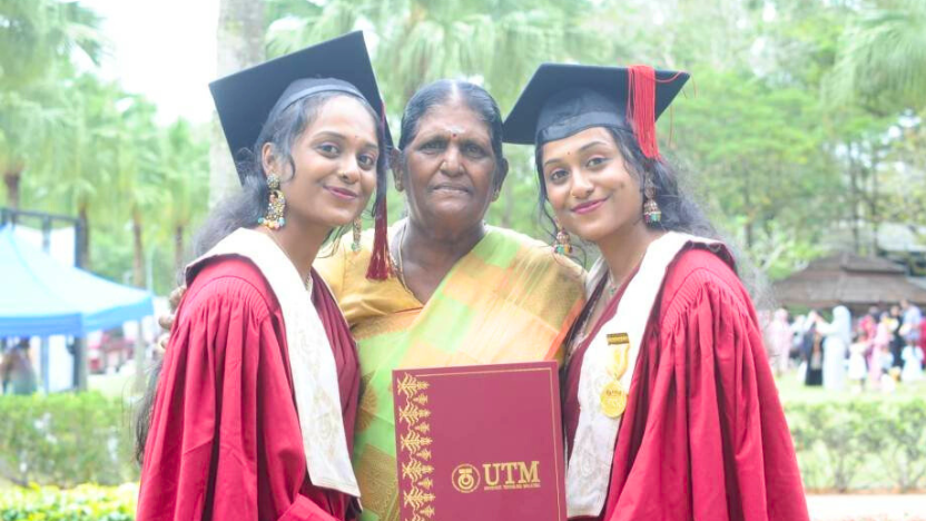 Double the smiles, double the inspiration. That's how we could define, the twins - S. Yamuna and S. Yasoda! These 23-year-old twins may seem like your average pair of sisters, but their story is anything but ordinary. They say that a journey of a thousand miles begins with a single step. And these incredible ladies have taken thousands of steps to reach this moment. The twins have been inseparable throughout their academic journey, studying side by side from primary school to secondary school, matriculation, and finally UTM. Their hard work and dedication earned them the prestigious Dean’s Award.