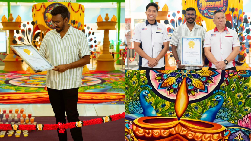This extraordinary feat, created at NU Sentral in conjunction with Deepavali, featured a 20 x 25 feet kolam adorned with 100 distinct shades of colour, an incredible achievement, completed entirely by Sivabalan himself.