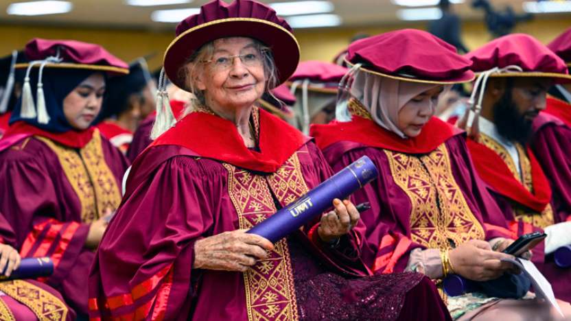 At 81 years old, age proved no barrier for Christine Longuet, also known as Rohani Abdullah, who has achieved her Doctor of Philosophy (PhD) in human ecology and ethnobotany. After a decade of journey, she completed her thesis titled Tempat, Tumbuhan dan Masyarakat di Terengganu; Penilaian Berdasarkan Dua Era, making her the proud recipient of a PhD from Universiti Malaysia Terengganu (UMT).