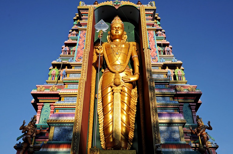Even though the main deity in this temple is, Shri Raja Rajeshwari Amman, the temple has a dedicated shrine for Lord Murugan. The is also a 16-meter-high statue of Lord Murugan standing outside of its temple, making it the second largest Murugan statue in the world, after the one in Batu Caves. The statue itself is said to be inspired by the Murugan statue in Batu Caves and is made using the same materials.Of the major festival in this temple is Thaipusam, which, like elsewhere, is celebrated with a procession, Kavadis, and devotees carrying milk offerings “Paal Kudam” dedicated to Lord Murugan.