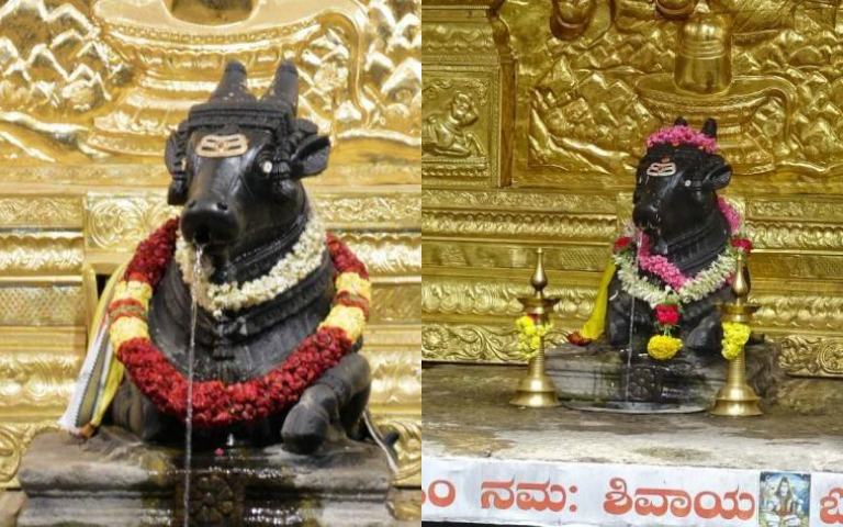 Even today, the Shiva Lingam situated below the Nandi statue is continuously bathed by the 'holy water' or 'Teertha' from the statue's mouth, and flows into Kalyani. The source of the water is still unknown.