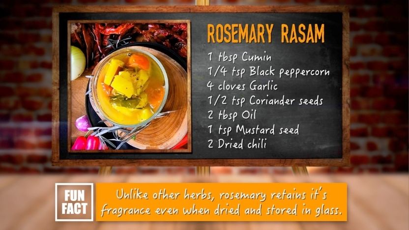 7) Garnish with the rosemary and coriander leaves before taking the saucepan off the heat. Serve while still hot.