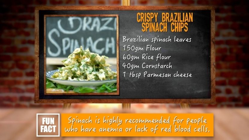 2) Put the spinach into the batter and deep fry the spinach inside hot oil.