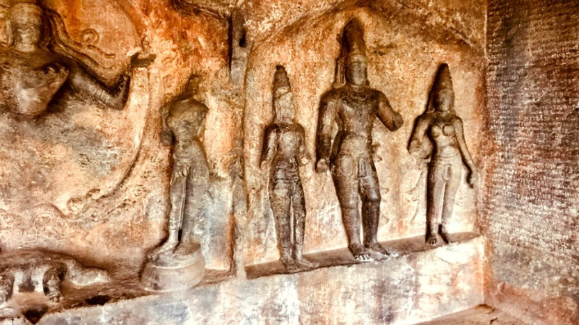 Within the rock-cut façade, one finds Shaiva bas-reliefs that include Bhairava with his sacred dog, Vighneswara (Ganesha), and revered Shaiva saints such as Appar, Sambandar, and Siruthondar. Though time has damaged many carvings, their presence helps date the temple and affirm its deep roots in the Shaiva tradition. A partially defaced figure believed to be Vedavyasa stands as another reminder of the spiritual scholarship that shaped India’s religious landscape.