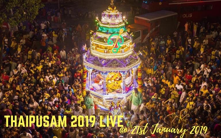 This year, Astro Ulagam's LIVE streaming was conducted from 5PM, 20th January to 10PM, 21st January 2019 from Sri Subramaniar Swamy Temple, Batu Caves and Arulmigu Shree Balathandayuthapani Hilltop Temple, Penang.