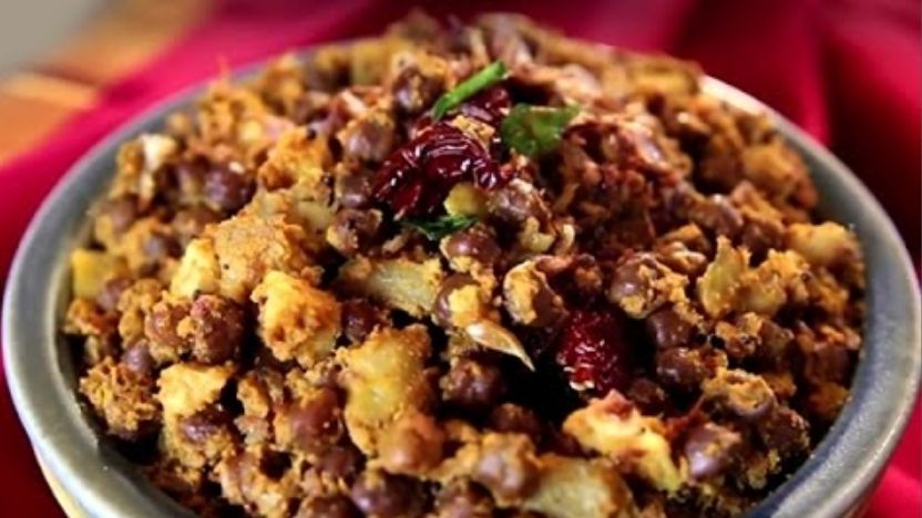This dry vegetable dish is prepared using vegetavles like cabbage, unripe jackfruits, beans, and bitter gourd, among others. The items are chopped and seasoned with turmeric powder, mustard seeds, and curry leaves, before being served with rice.
