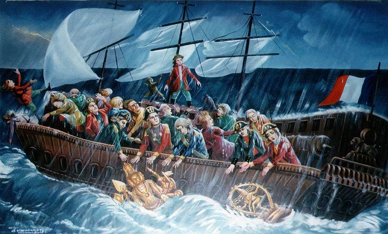 They tried to melt the idol, but failed, and so decided to carry it home by sea. Having travelled only a few nautical miles from the shore, they were besieged by a violent storm which rocked the ship violently.
