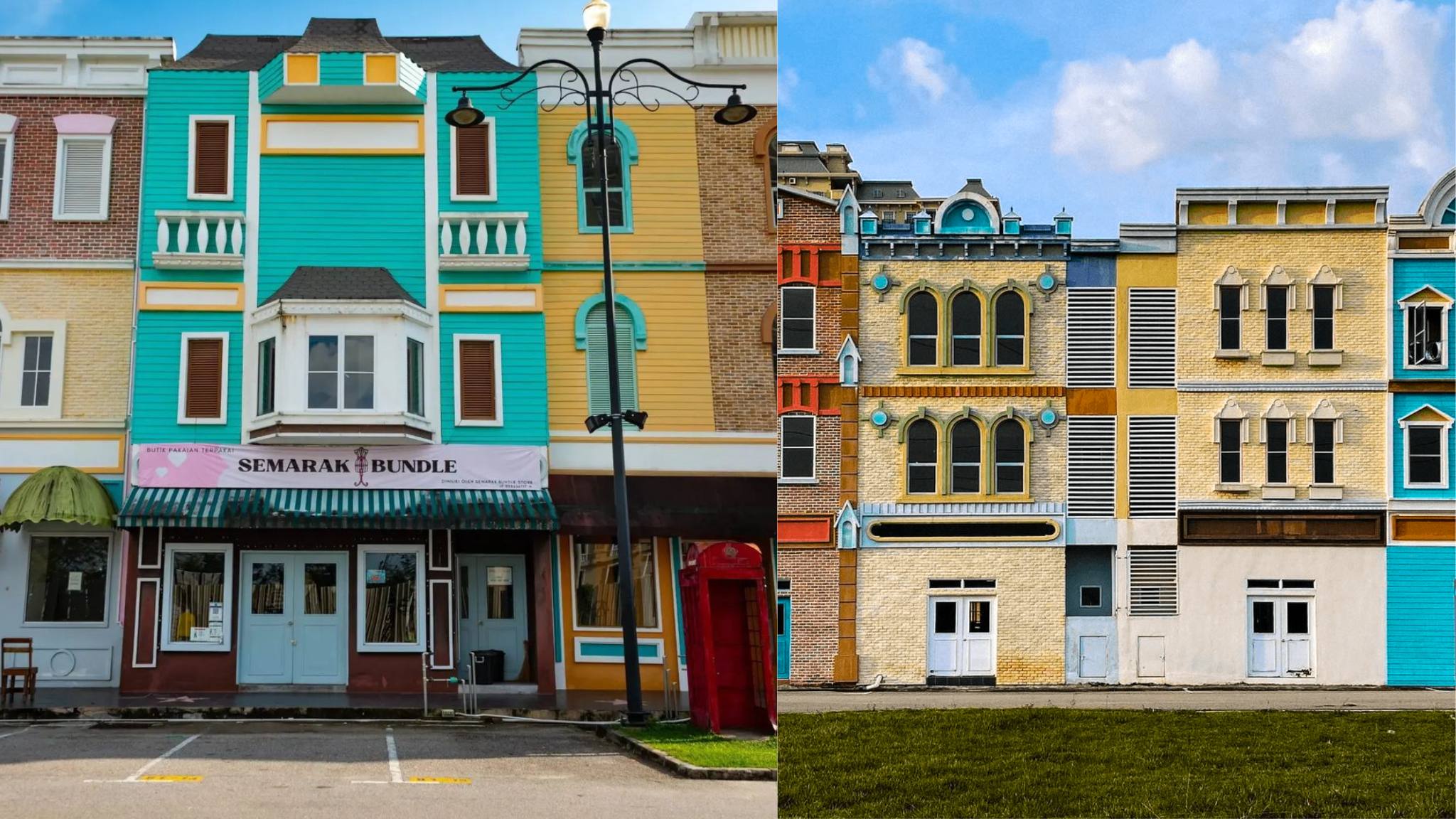 Rows of 57 pastel-coloured buildings at Agacia Town, or Bandar Agacia, in Kampar, have brick walls, European-style doors, and windows. They all have different facades, which is a fun fact.