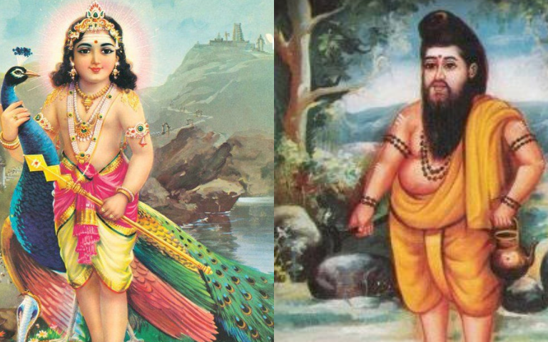When Arumugan came back, He saw that His brother has won the fruit. Feeling cheated, He left in a hurry to the hills of Palani in the South of India. He was traveling in the South doing his best to fight injustice in various battles. He met Agasthiar and proceeded to assist him in his ventures.