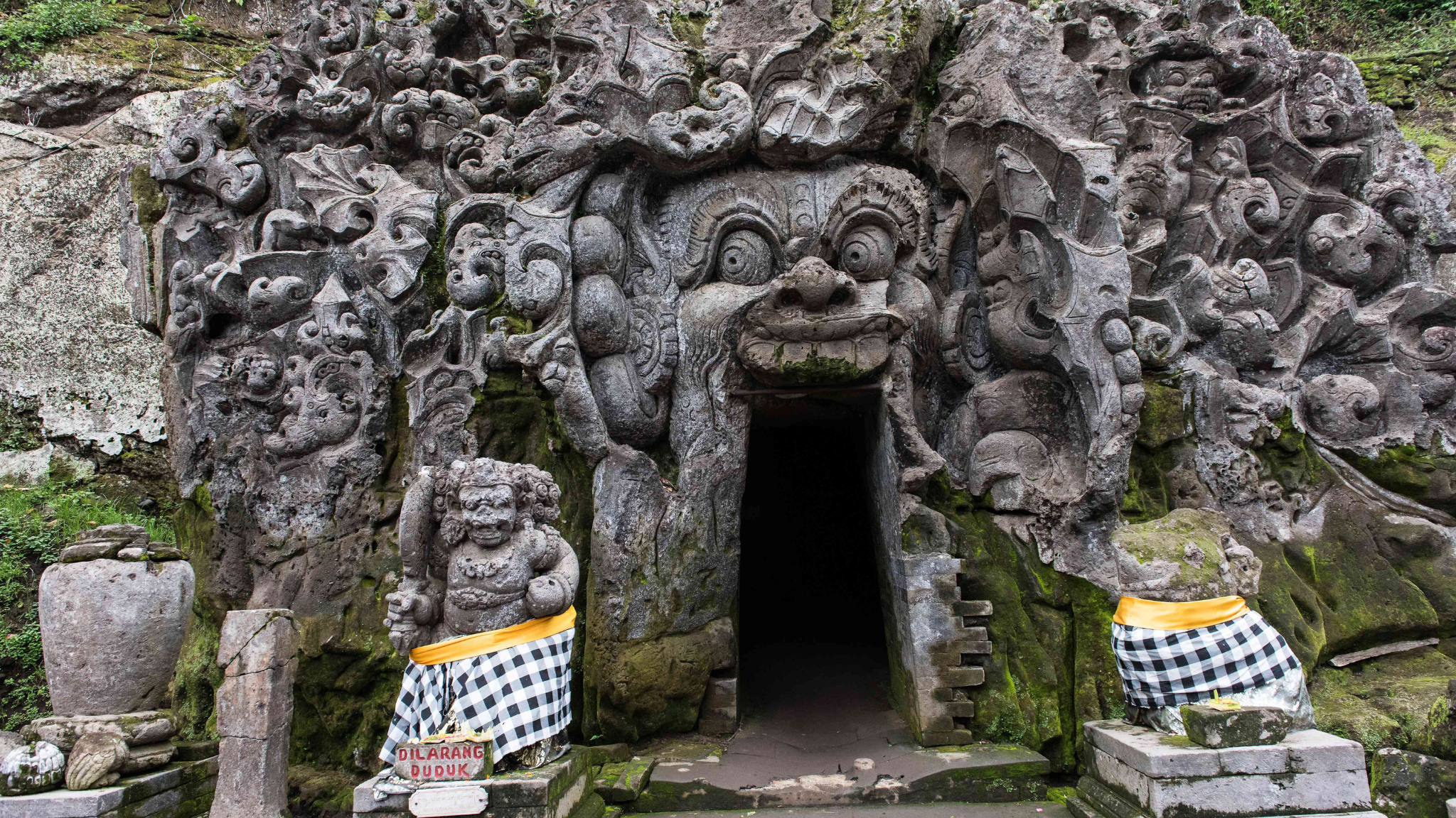 Also known as the "Elephant Cave Temple," Goa Gajah is located near Ubud in Bali. It features a cave entrance carved with intricate stone reliefs and houses statues of Hindu deities.