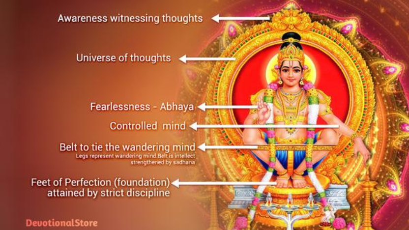 Lord Ayyappan’s hand is held in abhaya mudra, offering assurance and fearlessness to his devotees. The space within the idol is believed to symbolise the vast universe of thoughts, reminding devotees of the inner journey toward self-realisation. Together, these elements reflect Lord Ayyappan as the embodiment of discipline, compassion, and divine consciousness, guiding devotees on the path of righteousness and spiritual balance.