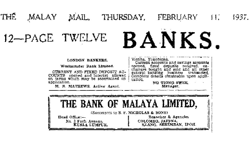 By 1936, his savings and lending operations including pawnbroking had grown strong enough to be formalised under statutory requirements. On 31 December 1936, he founded: The Bank of Malaya Limited, with an issued capital of $180,000. The bank held its first meeting on 9 January 1937, marking a historic moment: an Asian entrepreneur establishing a formal banking institution during the era of British colonial rule.