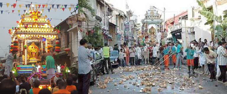 இக்கோவிலின் மாசிமகத் திருவிழாவில் சிங்கமுக காளியம்மன் ரதம் மலர்களாலும் விளக்குகளாலும் அலங்கரிக்கப்பட்டு தெலுக் பஹாங் கடல் பகுதில் மிதக்க விடப்படுகிறது. இந்த அழகு காட்சியை வார்த்தைகளால் விவரித்து விட முடியாது. பினாங்கைப் பொறுத்தவரை தைப்பூசத்தை அடுத்து மிகப்பெரிய இந்து திருவிழாவாக இது கருதப்படுகிறது.